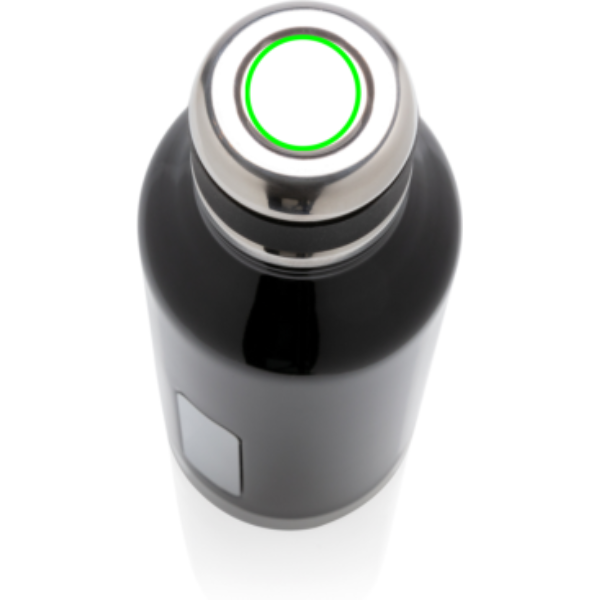 Läckagesäker vakuumisolerad flaska med skruvlock. Med unik tryckposition på framsidan. 304 stainless steel på insidan och 201 stainless steel på utsidan. Håller din dryck varm i upp till 5 timmar och kyld i upp till 15 timmar. Volym: 500ml.