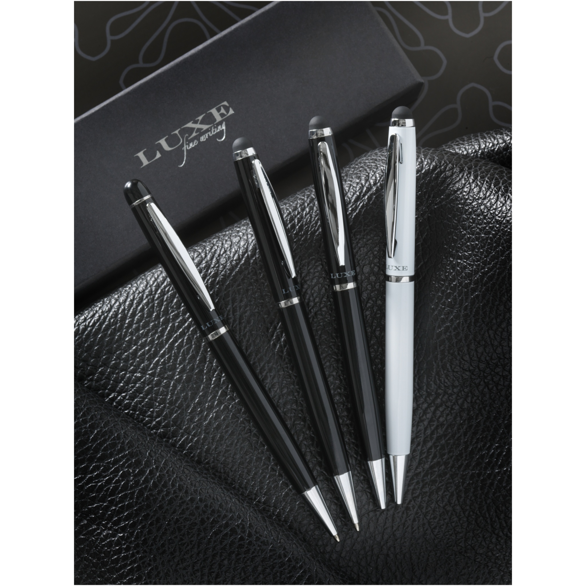 Lento kulspetspenna med touchfunktion. Exklusivt designad kulspetspenna med vridbar mekanism, griffel och sammetspåse. Förpackad i en lyxpresentask (storlek: 17x3,5x2 cm). Metall.
