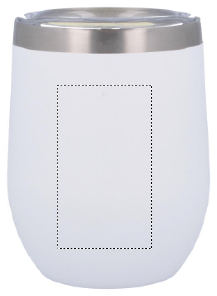 Termo mugg eller kopp med lock. Rymmer 300 ml. Dubbla väggar i metall som isolerar för både kyla och värme.