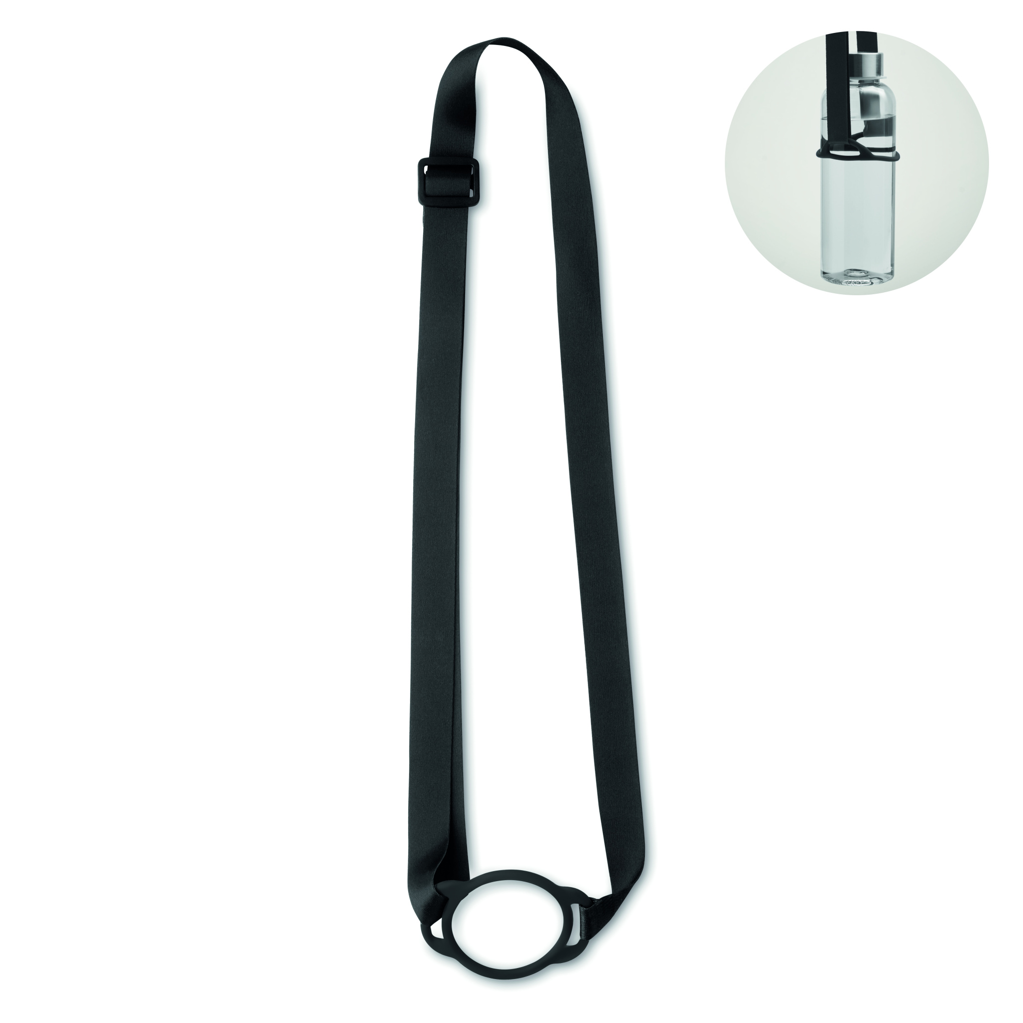 Logoband med mugghållare (6 cm i diameter) i silikon för festivalevenemang och justerbart spänne i PP. Nyckelbandet är 20 mm brett.