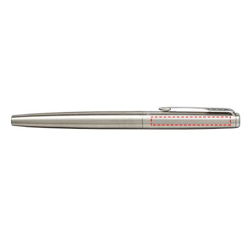 Jotter reservoarpenna. Jotter reservoarpenna är en modern tolkning av den ursprungliga ikonen. Med en spets i rostfritt stål, förkromad pennkropp, kork i polerat rostfritt stål och pilklämman. Den levereras i en Parker presentförpackning. Metall.