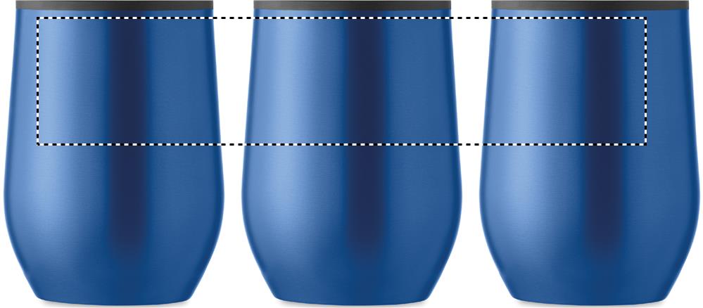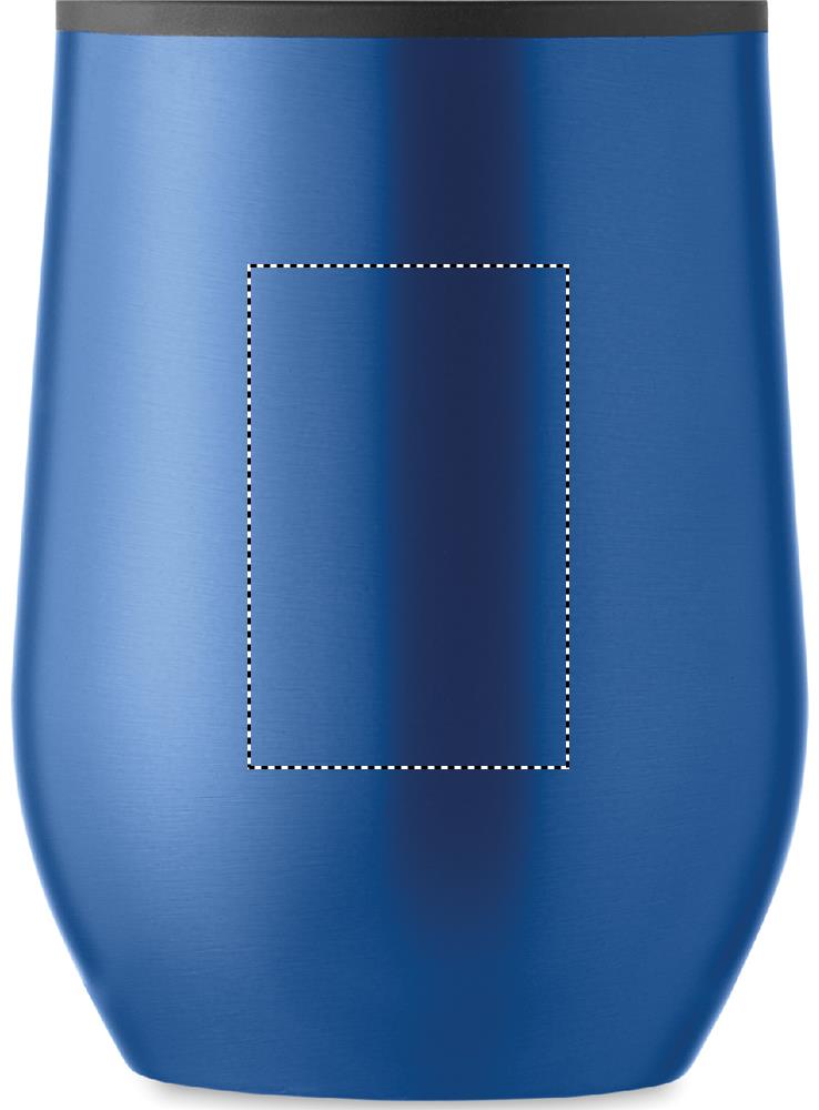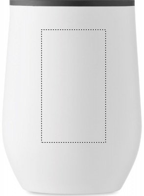 Mugg med dubbla väggar. Rostfritt stål med insida PP och genomskinligt PS-lock. Kapacitet: 350 ml.