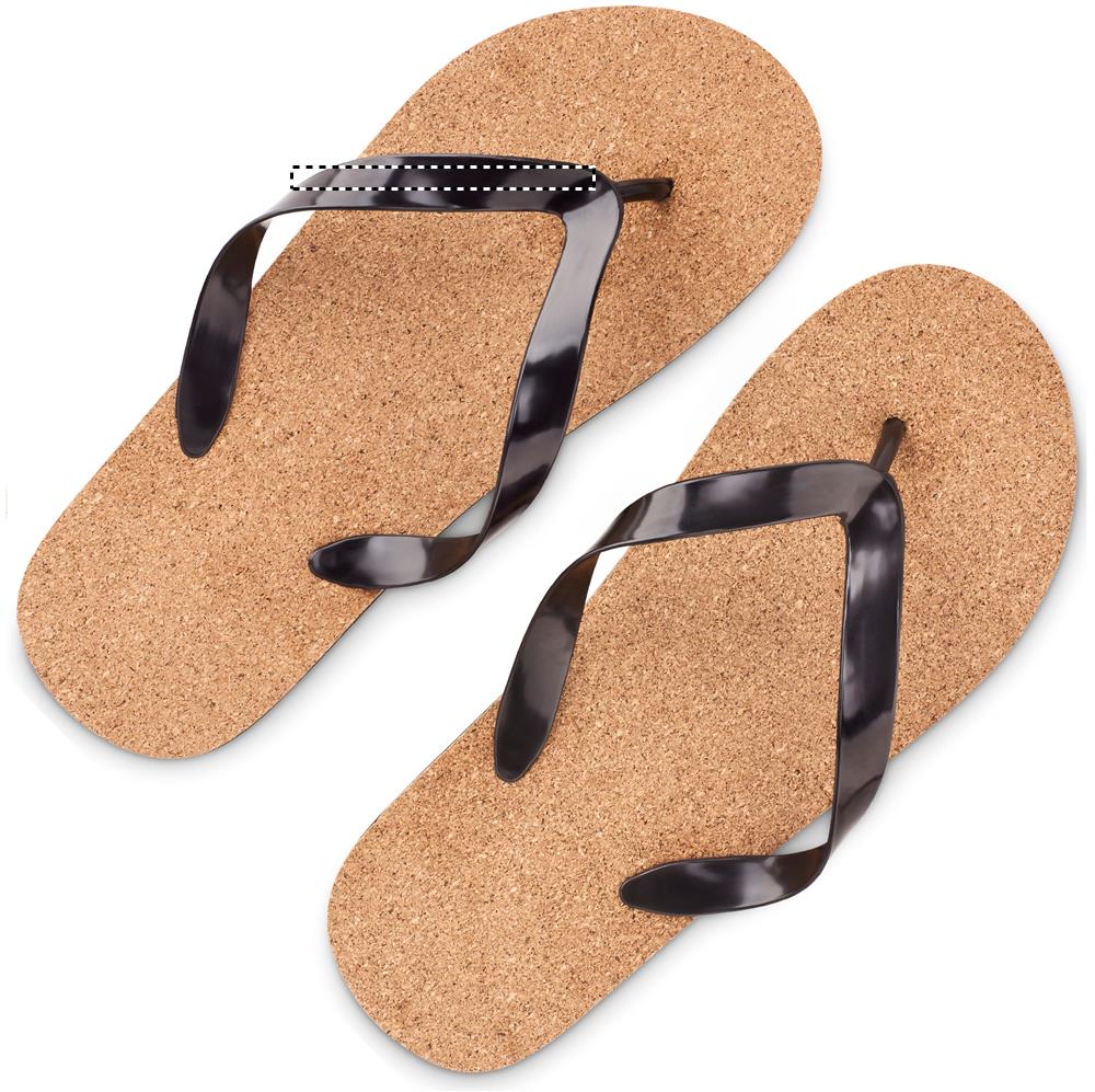 Slippers med kork, EVA-sula och PVC-remmar. Storlek M passar 36-39.