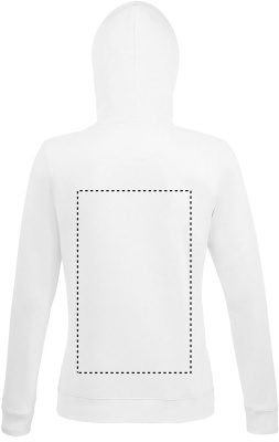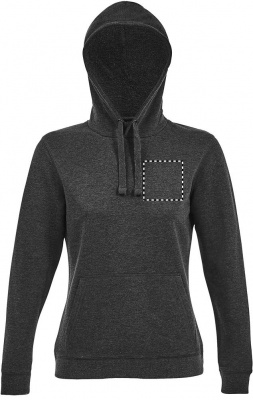 SOL'S SPENCER DAM, SWEATSHIRT MED HUVA FÖR DAMER, 80 % ringspunnen bomull - 20 % polyester, Borstat foder, Utsida: 100 % bomull FLEECE 280 LSF (tyg med låg krympningsgrad) , Påsydd ficka på framsidan, Skuren och sydd, Fodrad huva med dragsko, 2x2 ribbade muddar i ärmslut och nederkant, Halvmåneformad innerkrage, Tejpad halsringning för matchande storlekar, se storlekstabellen i avsnittet om produktdokumentation.