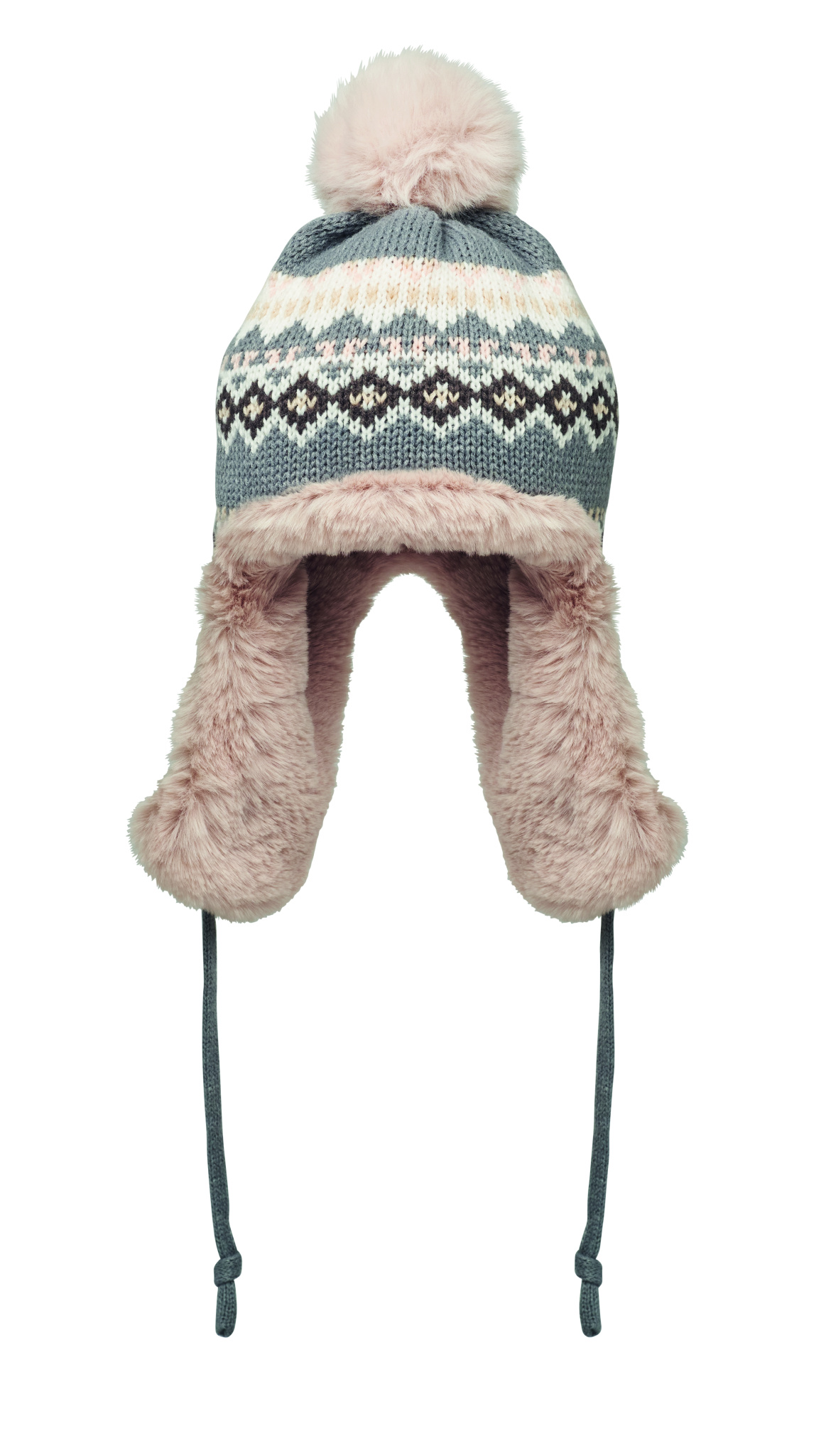 Stickad mössa med öronlappar och tofs i akrylfiber med polyester- och fleecefoder. Inklusive etikett för tryckyta på ena sidan. Storlek vuxen (58cm).