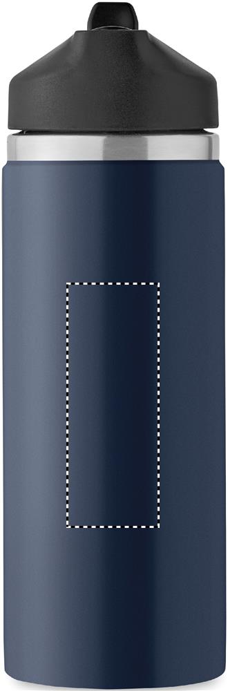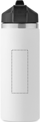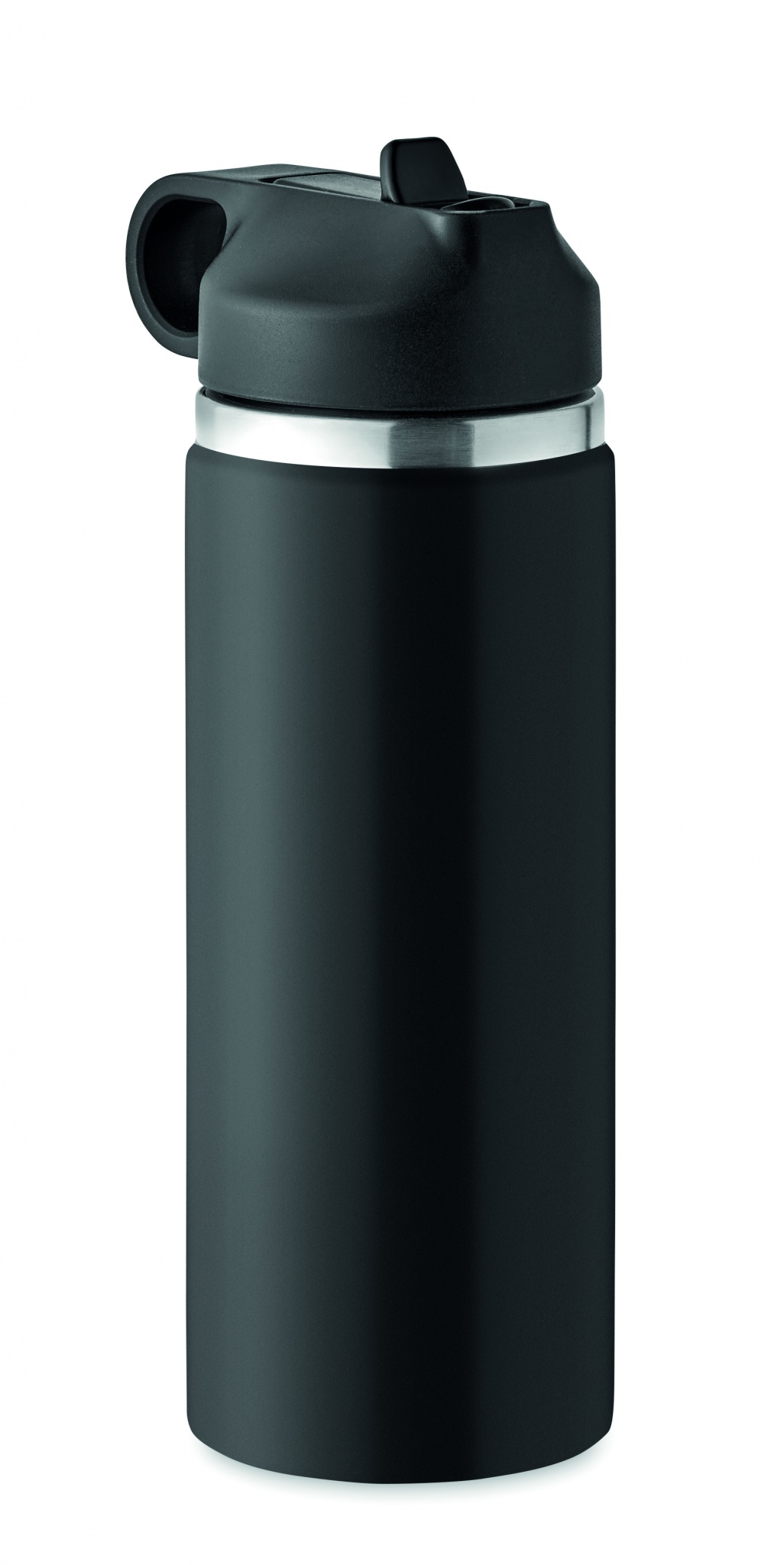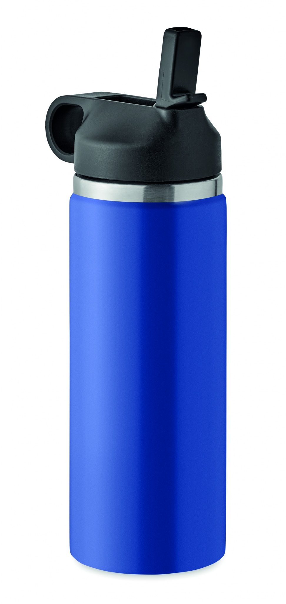 Flaska med dubbelvägg i återvunnet rostfritt stål (90 % återvunnet rostfritt och stål 10 % rostfritt stål) isolerad vakuumflaska med lock med grepphandtag i PP och integrerat sugrör inbyggd sugrör. Läckfri. Volym: 500ml.
