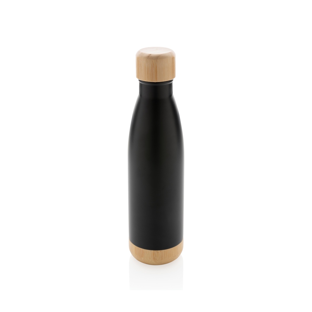 Vakuum stainless steel flaska med kork och botten i bambu, svart