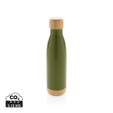 Vakuum stainless steel flaska med kork och botten i bambu, grön