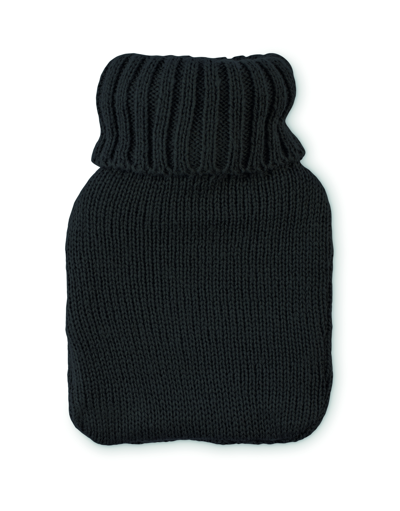 Varmvattenflaska med stickad påse i akryl. Används för att ge värme, vanligtvis i sängen, men även för att tillföra värme till en specifik del av kroppen. Volym: 450 ml.