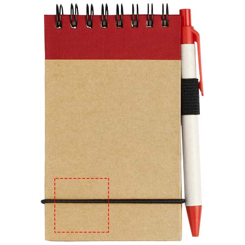 Det är enkelt att anteckna snabba idéer med Zuse anteckningsblock i återvunnen form med en penna i matchande färg. Det lilla anteckningsblocket innehåller 40 linjerade blad av A7-recirkulerat referenspapper, så det passar bra i alla små och stora väskor, är lätt att hålla i och dessutom: ett hållbart val. Olika tryckalternativ finns tillgängliga för att visa en logotyp på den hårda pärmens utsida.